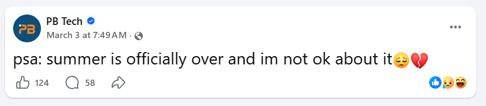 Some businesses lean into a casual approach to writing. Here’s a relatively recent post from PB Tech.